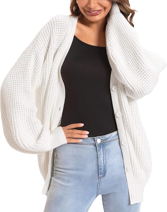 QUALFORT Cardigan Sweaters for Women 100% Cotton Button-Down Oversized Knit Outerwear Fall Tops for Women 2026