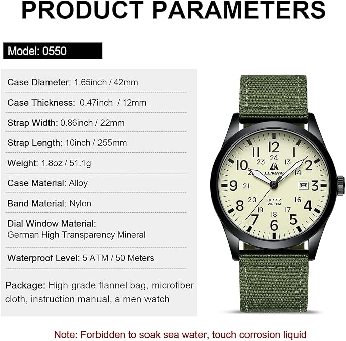 LN LENQIN Mens Watches Unisex Military Sport Nylon Strap Stylish Luminous Fashion Analog Quartz Watch for Men Waterproof Army Tactical Casual Wristwatch
